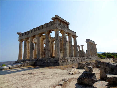 位于希腊萨罗尼克湾(Saronic Gulf) 的埃伊那岛,距雅典27公里。公元前 5世纪,埃伊那岛曾是一座繁荣的军事城邦,军事的强盛不仅推动了经济与文化的繁盛,也带动了雕塑艺术的发展。岛上建于古风时期到古典时期的爱法伊娥神殿,为古希腊雕塑提供了可供研究的模本。