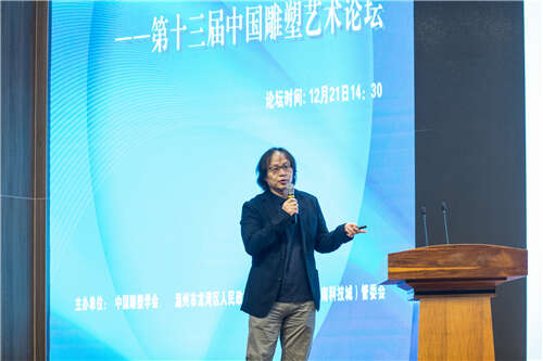 当天下午,还举办了“雕塑与国家和民族——第十三届中国雕塑艺术论坛”。论坛特别邀请中国社科院考古所研究员巫新华博士和新疆艺术学院副教授李永康博士,两位主讲嘉宾分别作了《“中原与边疆:古代丝绸之路美术考古新发现”》和《被遮蔽的传统:新疆地区古代雕塑概观》的发言。中国雕塑艺术论坛是由中国雕塑学会长期持续举办的雕塑艺术论坛,旨在通过学术研讨、讲座、交流等方式,提升学术品质,挖掘理论深度,拓展雕塑艺术的综合影响力。