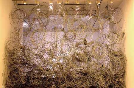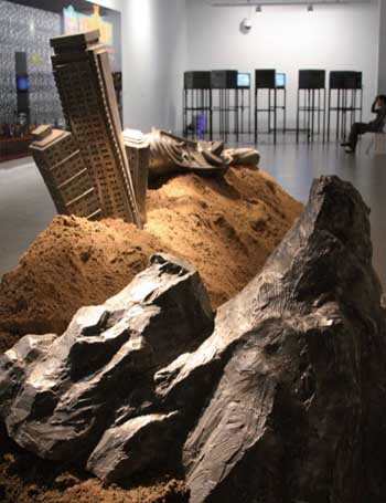 北京今日美术馆于2007 年10 月17 日至11 月13 日举办以《能量――精神、身体、物质》为主题的大型当代艺术展。这是该馆成立以来首次启用“独立策展人制度”策划的展览。展览规模之大覆盖了今日美术馆的所有展厅以及馆外可以有效利用的空间。五十余位艺术家利用雕塑、装置、影像、绘画等手段从不同角度,以高品质的学术性演绎了他们对“能量”的理解。其中朱金石的作品用3600 个灯泡组成了一个巨大的发光体,在它的照射下,王晋用金属焊接的庞大“骨骼”和史金凇的木炭灰烬,在二楼主展厅中给人留下极为深刻的印象。