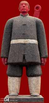作为个体的艺术家,刘若望对历史有自己的经验思辨,他没有单纯拾取几个符号,而是根植于他的生存环境中,重新创造出一种形象。他的内心深处一直有一种冥冥的呼唤,积蓄良久。这些年来,他东奔西走、反复摸索,但这种呼唤总是如影随形,挥之不去,竟至于成为压在心底的苦闷。这就是他对自己生于斯、长于斯的大地的追溯。历史的图像时时映现在自己的脑海里,那是历史与山川地理契合后印在他潜意识中的呼唤,于是一组天兵的形象呼之欲出。天兵,不过是一种历史隐喻,秦川渭水自古是兵燹之地,天下之争由此而出:秦皇汉武,文韬武略;李唐盛世,恢弘气象。所谓天下者,据秦岭函谷,即可望中原而得之。这是一种历史的故旧形势,但对于刘若望,他创作天兵,名之为天下,是把天下放进历史的陈述中,用视觉将历史暗道掩蔽的豪气释放出来,于是天兵成为唤起铁马金戈的号角。