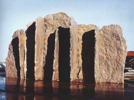 后来她在日本旅游的过程中发现在日本的园林艺术中,水也常常被当做是视觉元素来使用,它不是很夸张,是很细微,很柔和,却很有效果。在Alabama的Birmingham艺术博物馆的花园里,她一方面作为整个花园的设计者,另一方面她制作了一个以水墙为主的公共艺术作品,不仅运用了水作为视觉元素,同时,水流产生的声音也被运用在创作的过程中。ZIMMERMAN的公共艺术作品常常与制作的场所,环境有关系,她感兴趣人们最原始的感觉,并试图在自己的雕塑中去寻找独特的手法去阐释自己对生命的体悟。
