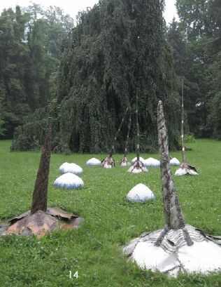 艺术与自然的关系在今天已得到更多人的密切关注——但是,这种关系并非是一个静态的话题。总的来说,它并不代表那种阿卡狄亚式的田园派情调,或者说出于通过雕塑美化环境的装饰目的,也不是一般雕塑公园中惯常的、基于常规的制度安排,不是,关于这些雕塑的安置,它别具一格的出发点,使诸多理念与相关问题外在显现。在这次雕塑展中,阿格列公园成为当代艺术家们所创造的雕塑与自然之间关系的一个最有力的佐证,它同样反映了人类给自然环境所造成的日益严重而无法挽回的损害和污染所带来的变化和破坏及其隐藏着的各种戏剧性后果。在这个语境中,最重要的就是作为宇宙实体的时间,不论过去现在还是将来都同无处不在的自然层面紧紧联系在一起,在那里面,人类的出生、生活和死亡都在一种不仅排除了物质宿命论的惰性终止,同时也排除了从整体上来说将一切多变的和模糊的事物进行概念性分类的宇宙的渗透性扩张。因此,时间被看做是在一条长河中过往的存在和对前景的追忆,这与西方思想中关于时间的概念是不一样的,后者从不与现实、身份和存在整体相背离,这正是禅的哲学和精神特点。