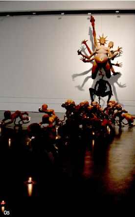 沈业(韩国雕塑艺术家):产业革命和技术革命带来的开发过度 和发展,其结果是人类进入到一种物质过剩的世界之中。我们现在看到的几乎完全是美国式的价值观给各地方所造成的冲击,也是给人类的发展造成的冲击。如人类的环境已经面临着严重的威胁。在这样的情况之下,我感觉到人类的命运受到了威胁。我就想表现这种威胁及人类的痛苦。韩国的美术界现在形式化、商业化的作品占主流,我的作品有比较强的批判性。我的这种作品在我们国家有一些 限制,但是我看到在中国,艺术非常多样,受众面很大,所以我能在 这里展出感到比较舒服和高兴。