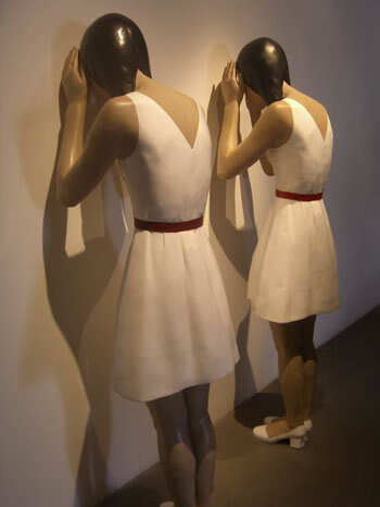 ——向京的雕塑主要是女性主义题材,并且在语言形式上更强调雕塑的绘画性。她从早期的女性主义青春主题,一直到通过女性主体表达更普遍的当代社会的荒诞感和存在的虚无——