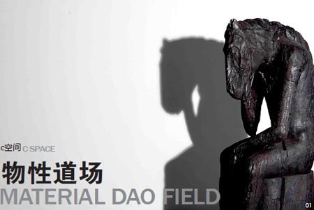 在“物性道场”展出的雕塑作品是两张同一模式的中国明代式样的条案,一为硬木质料,一为不锈钢质料,二者形成对比。案面上雕出七个相同的古希腊男人头像,由于将案桌的腿插入立面墙体,案面探出墙体,深浮雕头像直接面向观众,平视的距离感带来互动的、交流的心绪,它既不模仿,也非象征什么偶像。它凸显而独立存在着,并通过自身的神秘感和空间的错位感来影响作者和观者的心绪。