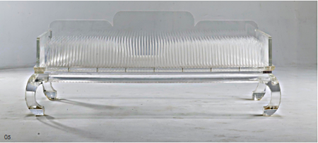 庄红艺的装置、雕塑把握着一种逆向转化的创作方法,例如床榻本是睡眠、休息之器具,经其逆向转化就成为一种“刑具”,他的“钉床”最能表明其方法论的效力。这两件作品挪用古典床榻的造型,采用不锈钢和亚克力两种材料,磨制数千根带螺丝的钉子拧入床榻,其正常功用发生了逆转,日用性、日常语言磨损的器具焕发出艺术想象带来的惊奇。