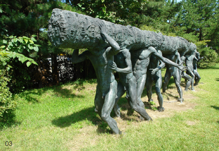 除了大规模的雕塑公园之外,首尔还拥有一些小型的艺术园区。海太饼业集团的生态园,就是其中比较有特色的一个。这个企业提倡的发展理念,就是自觉地将绿色食品与健康理念相结合,创造艺术化的生活。他们经常通过开展一些雕塑比赛,来陶冶员工们的艺术情操,甚至于在每个办公区中,都摆放着他们自己创作的艺术作品。这些作品构思奇妙,以独到的表现方式呈现着他们对于生活与艺术的理解与自信。在他们的生态园中,这种绿色生态的理念得到了更为充分的延续与释放,一些优秀的大地艺术以及互动性作品,使这里成为充斥艺术与生活梦想的乐园。在这里,生活与艺术的疆界被淡化,体现着后现代文化精神。